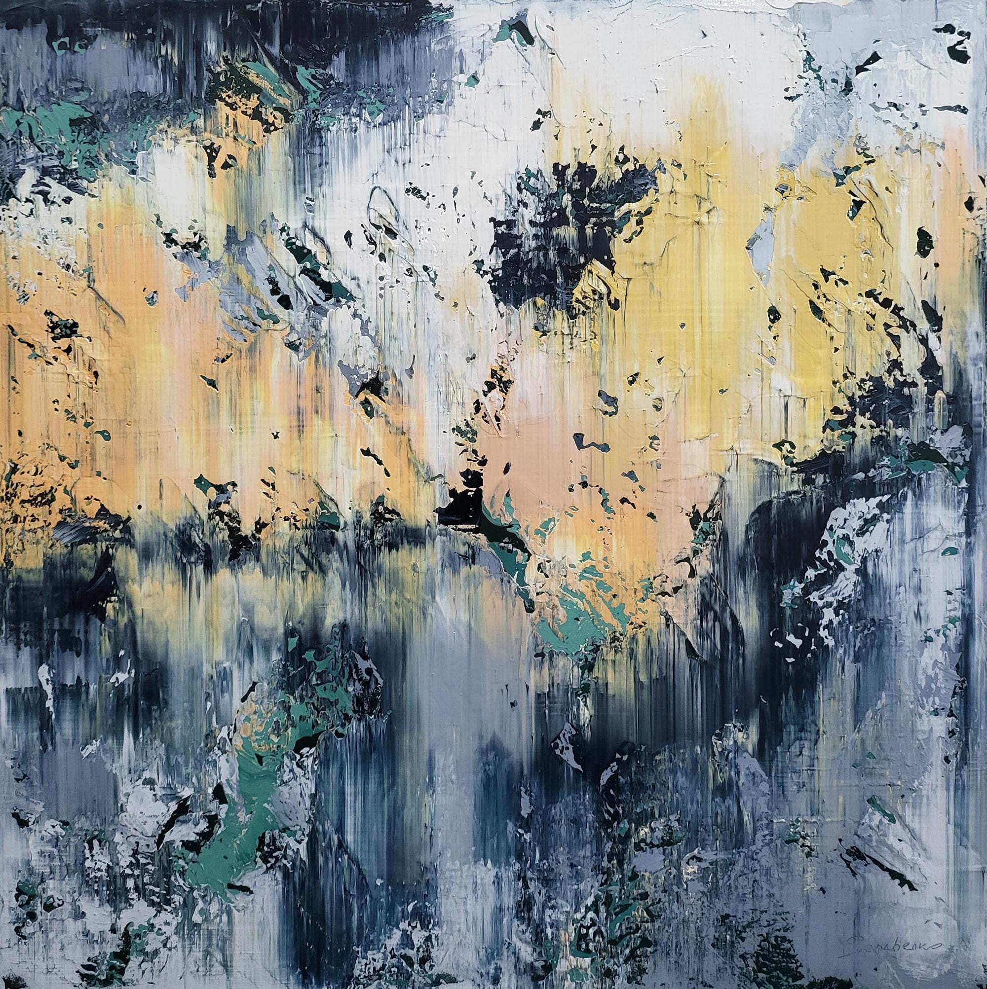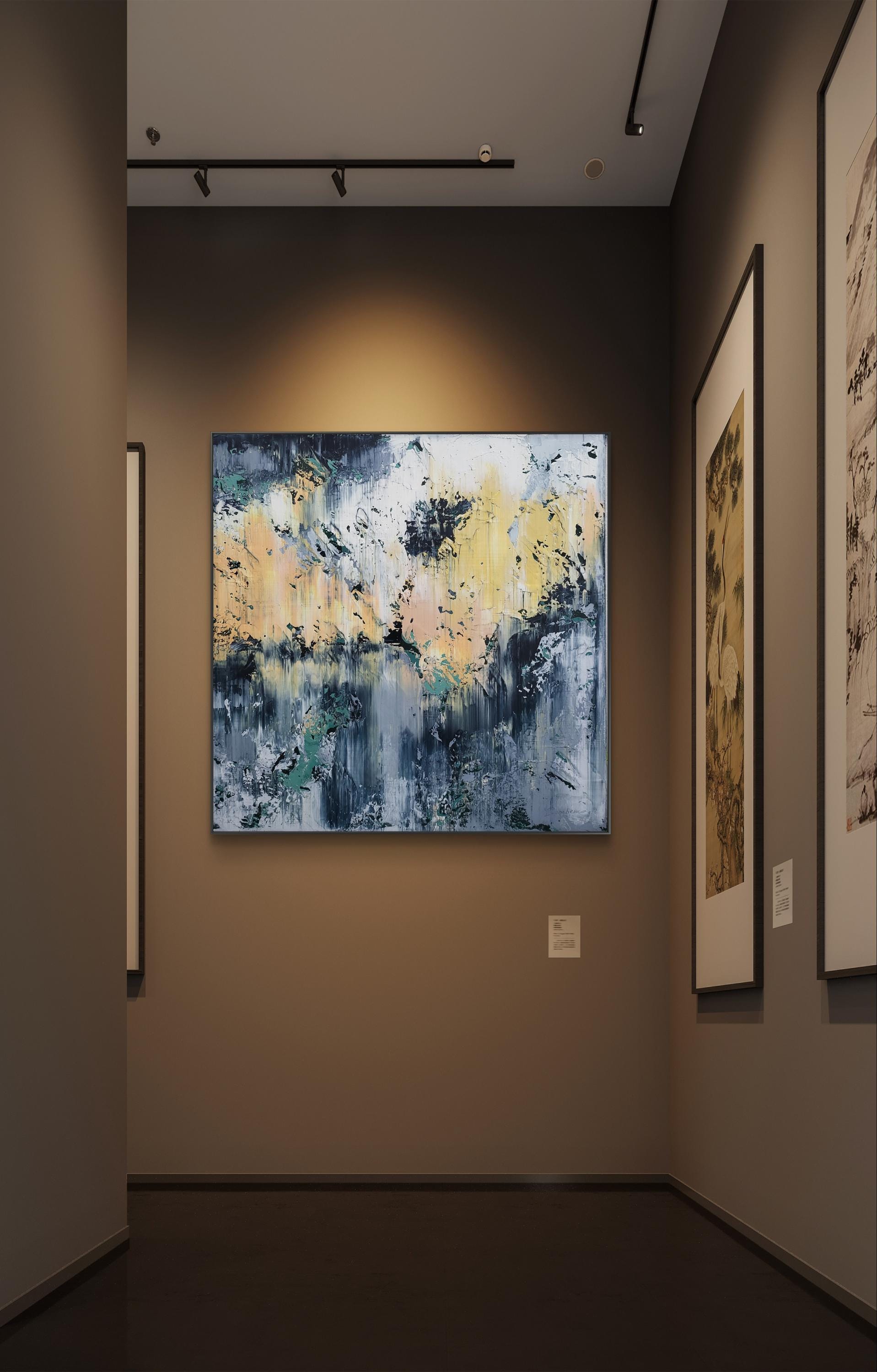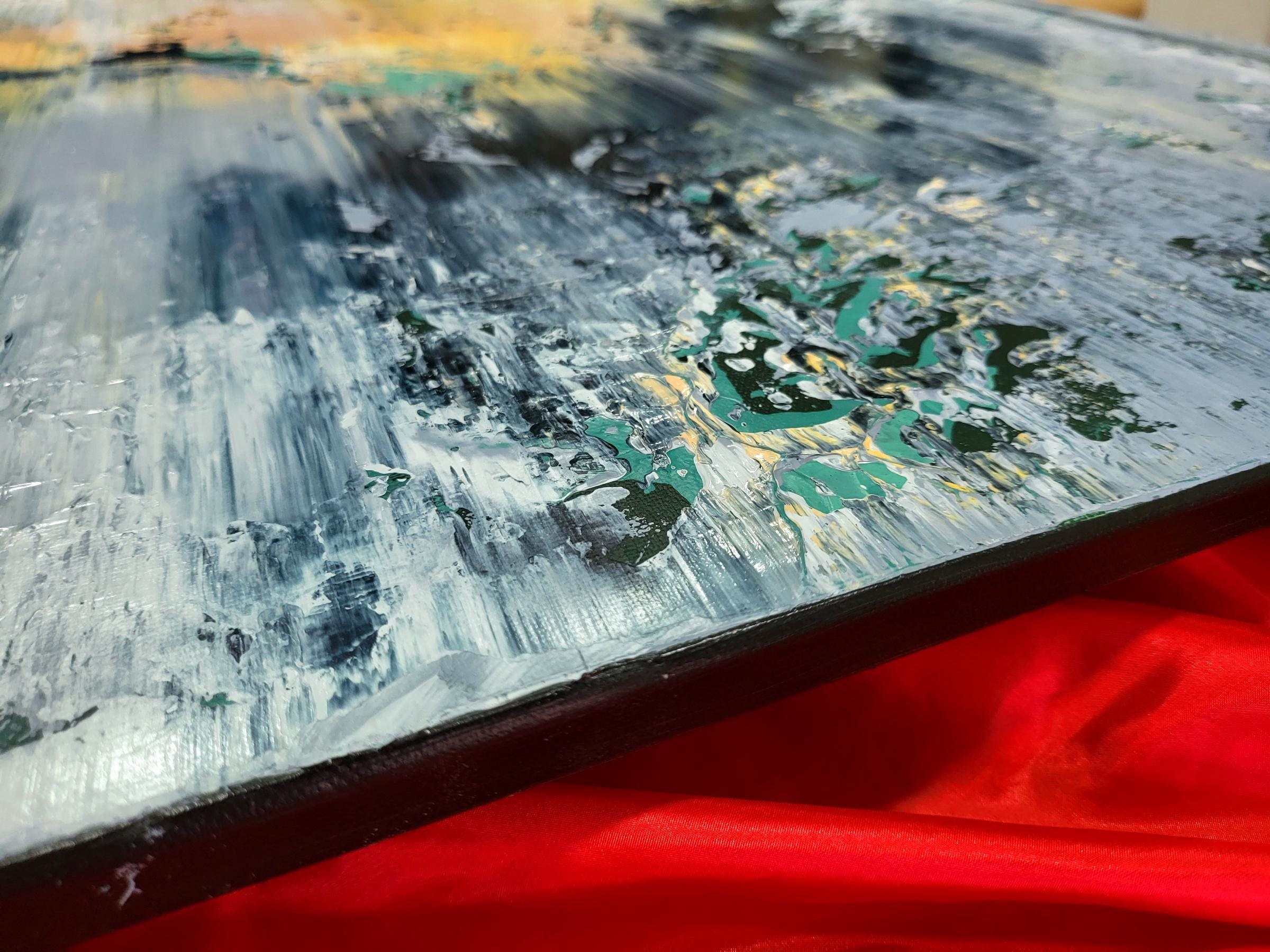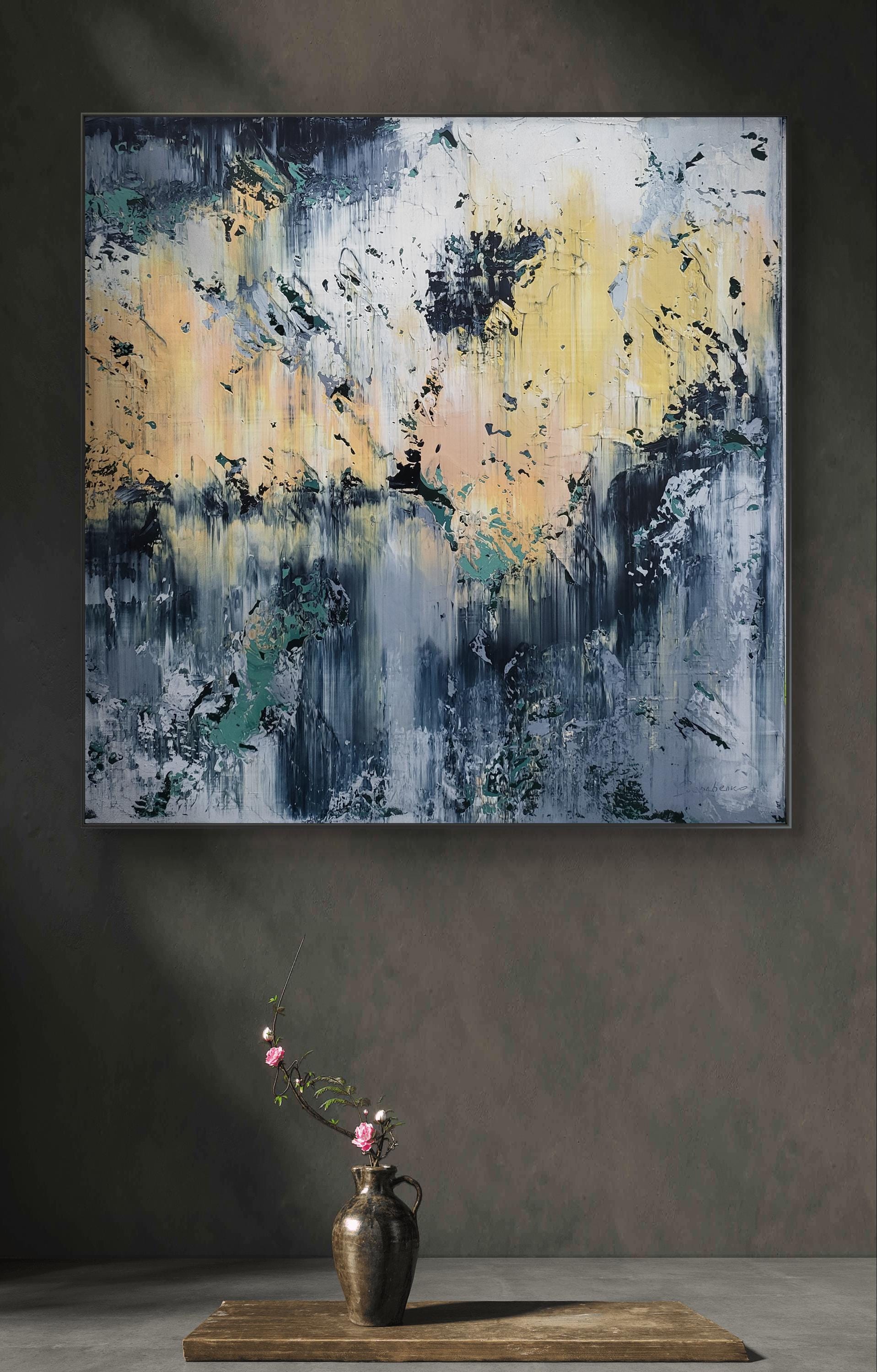 This vibrant artwork bursts with an explosion of colors, dominated by rich blues, pinks, and yellows. At its heart, a dynamic swirl of blue forms a captivating focal point, possibly resembling an ethereal figure or abstract form, surrounded by lively brushstrokes. The artist employs bold, expressive techniques, layering textures to create depth and movement. The surrounding hues, reminiscent of a thriving garden, incorporate splashes of green and hints of red, conveying a sense of lively chaos. The interplay of colors and forms evokes both natural and fantastical elements, inviting viewers to explore the myriad details contained within. This piece masterfully balances abstraction with suggestion, urging the observer to interpret its essence. Its dynamic composition and vivid palette make it a striking example of expressive contemporary art.
