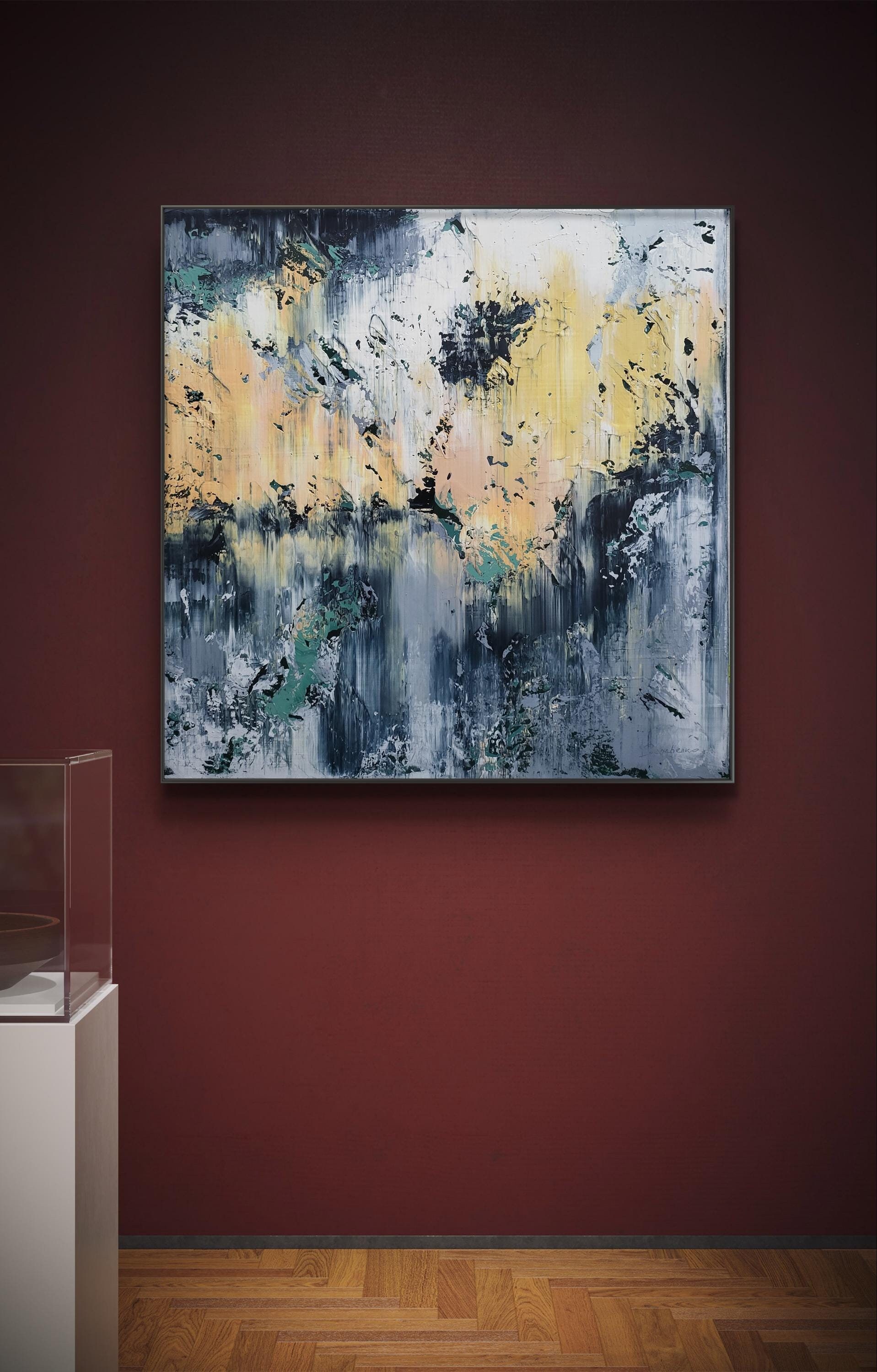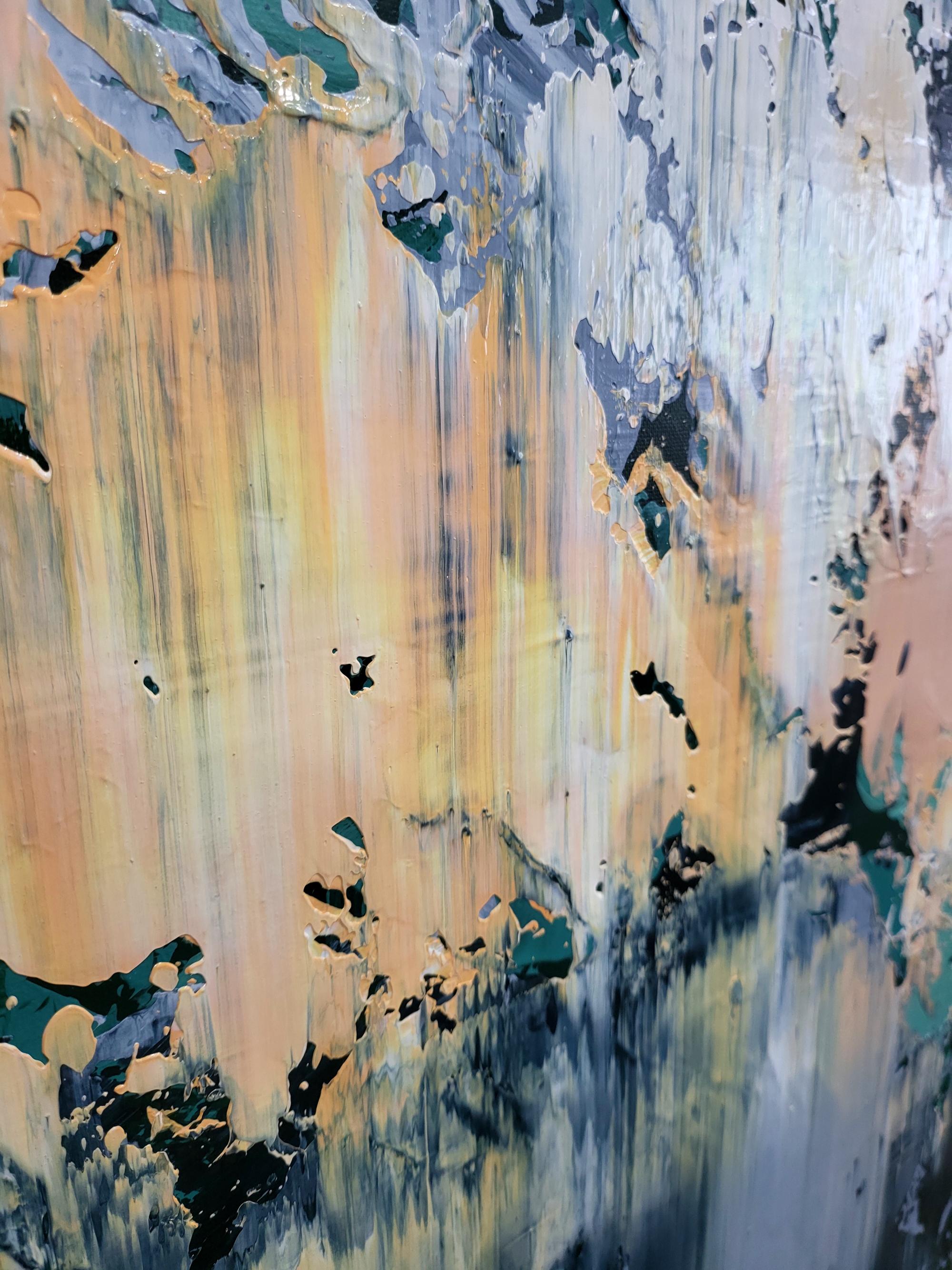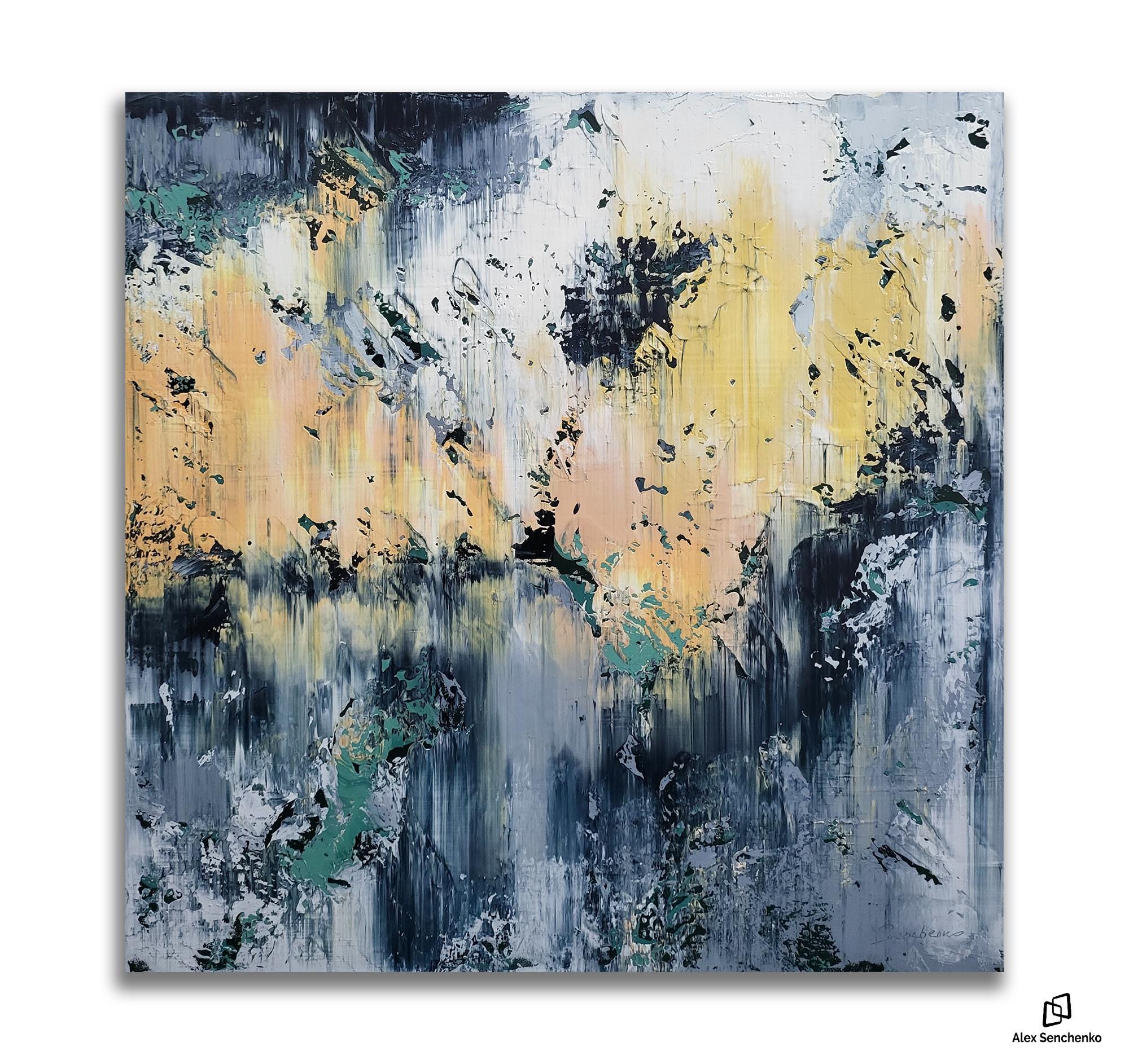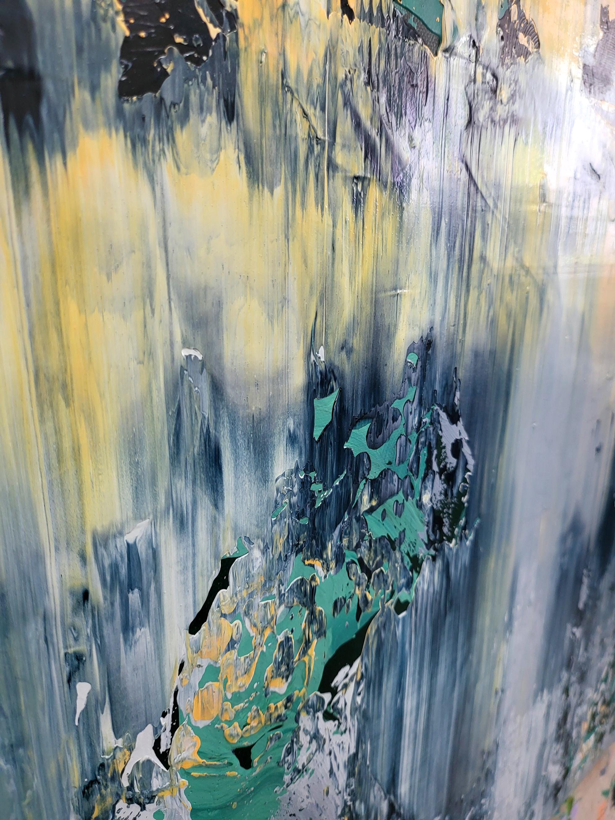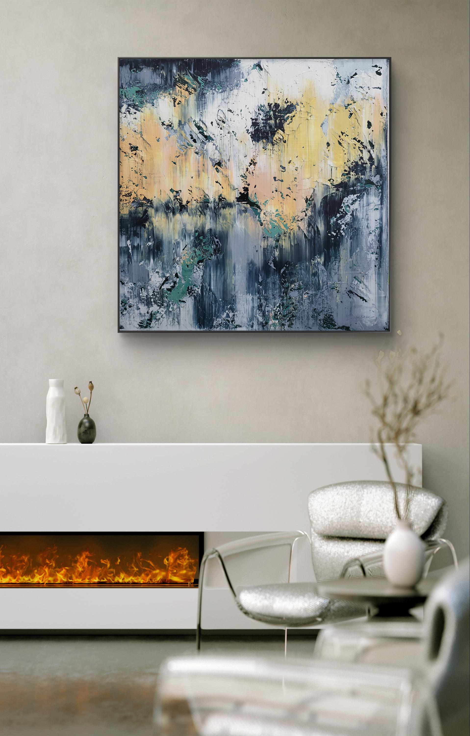This vibrant artwork bursts with an explosion of colors, dominated by rich blues, pinks, and yellows. At its heart, a dynamic swirl of blue forms a captivating focal point, possibly resembling an ethereal figure or abstract form, surrounded by lively brushstrokes. The artist employs bold, expressive techniques, layering textures to create depth and movement. The surrounding hues, reminiscent of a thriving garden, incorporate splashes of green and hints of red, conveying a sense of lively chaos. The interplay of colors and forms evokes both natural and fantastical elements, inviting viewers to explore the myriad details contained within. This piece masterfully balances abstraction with suggestion, urging the observer to interpret its essence. Its dynamic composition and vivid palette make it a striking example of expressive contemporary art.