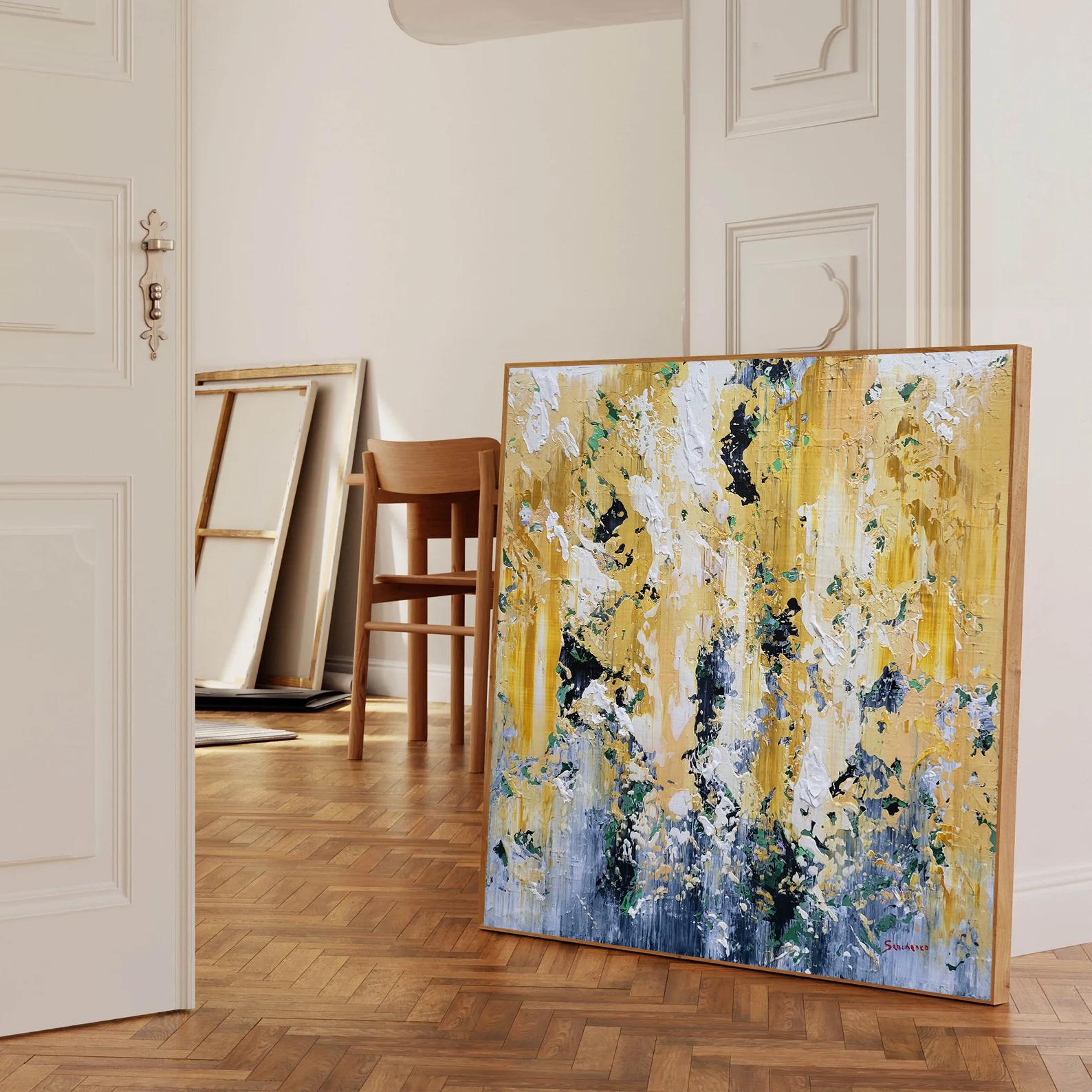 This painting is a metaphor for my vision of life — positive, dynamic, and simple. The rich, multi-layered textures invite you to find balance between chaos and harmony, making it a perfect focal point for contemporary interiors.