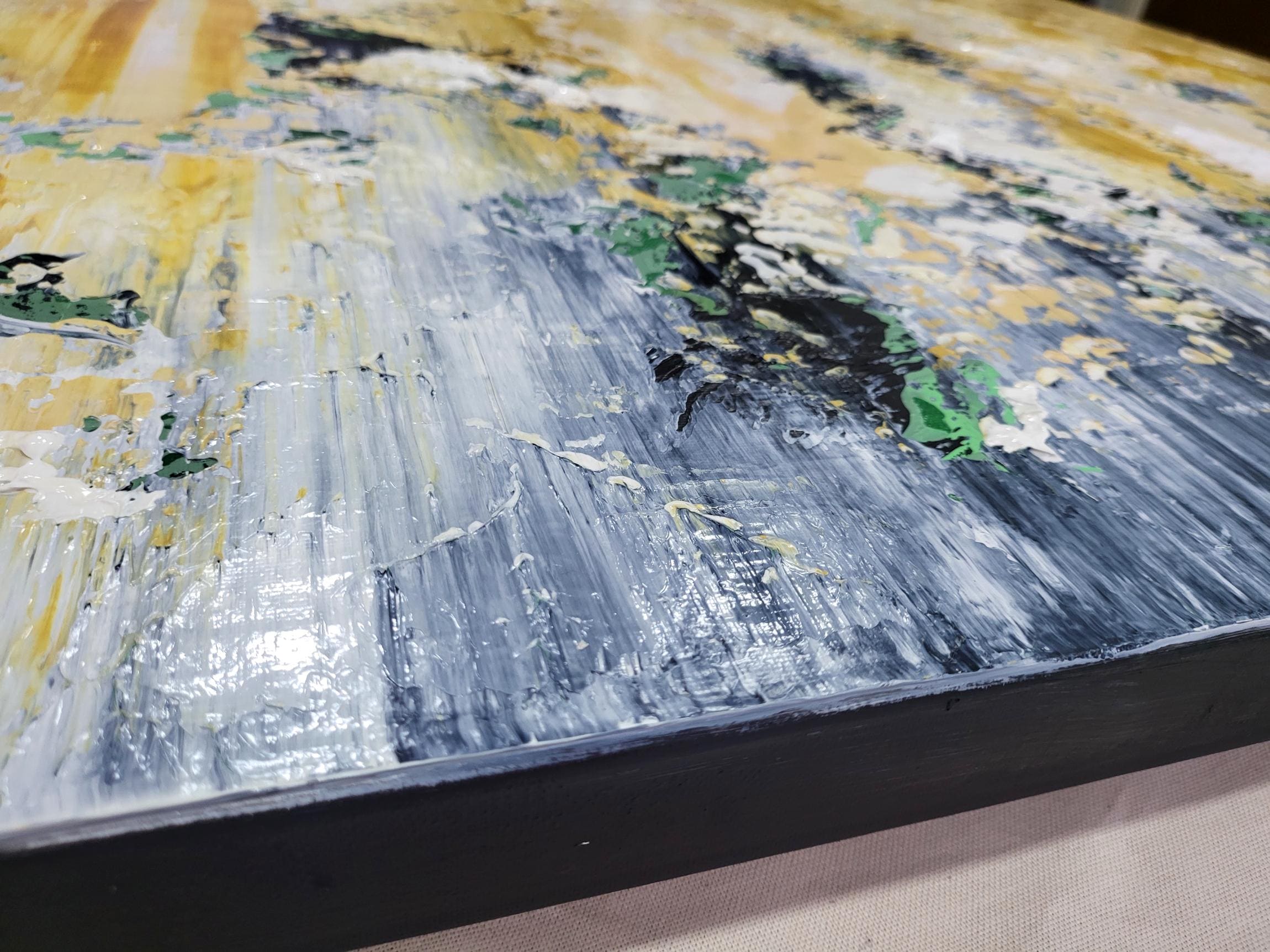 Please note that while I strive to capture the true essence of the artwork in photographs, "Golden Echo" looks significantly more impressive in person.