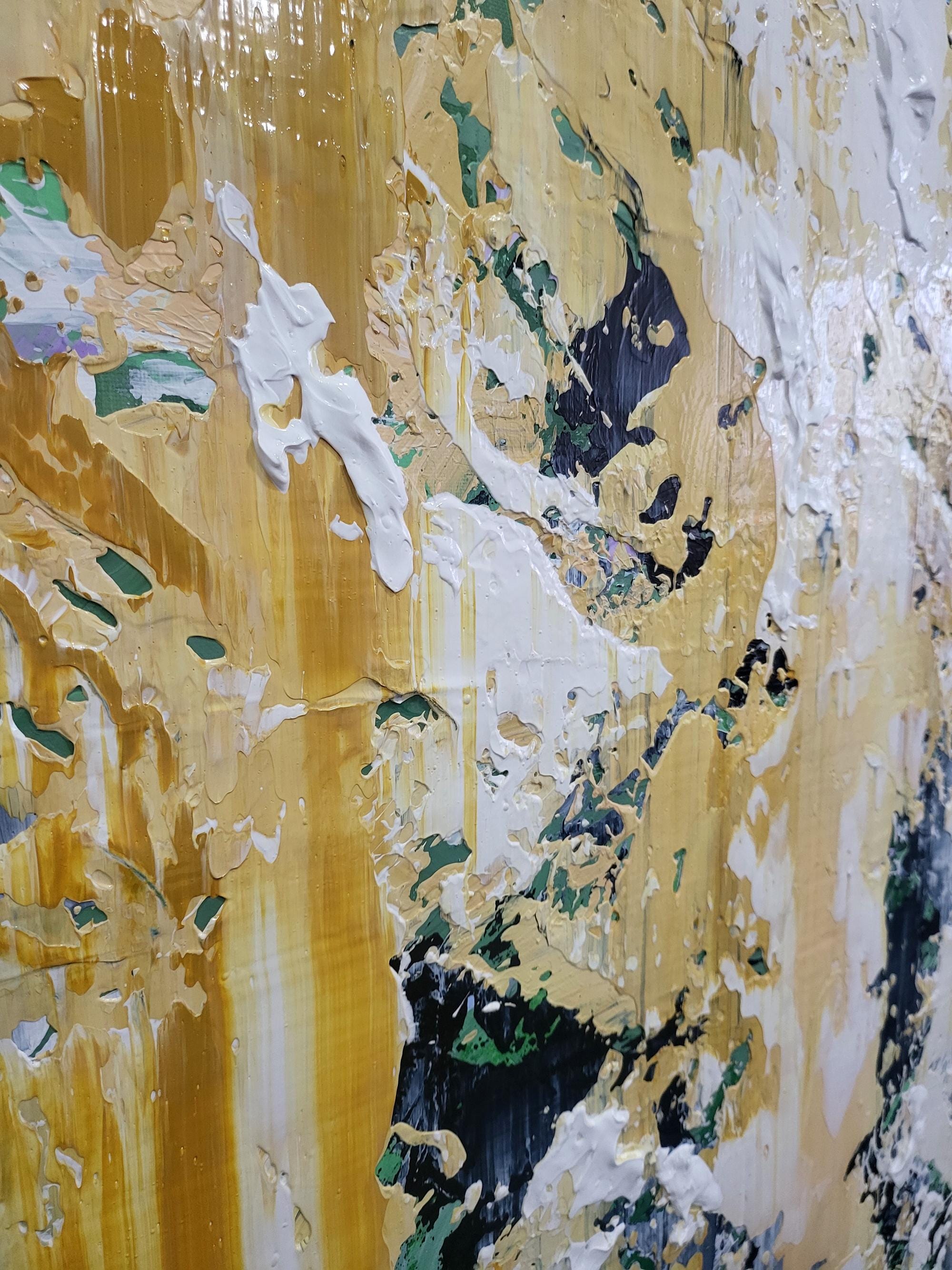 The camera often struggles to fully translate the complex 3D texture, the way the light catches the metallic-like yellow tones, and the deep emotional resonance of the heavy palette knife strokes. When you see it on your wall, you will experience a level of detail, vibrancy, and tactile depth that a screen simply cannot convey.