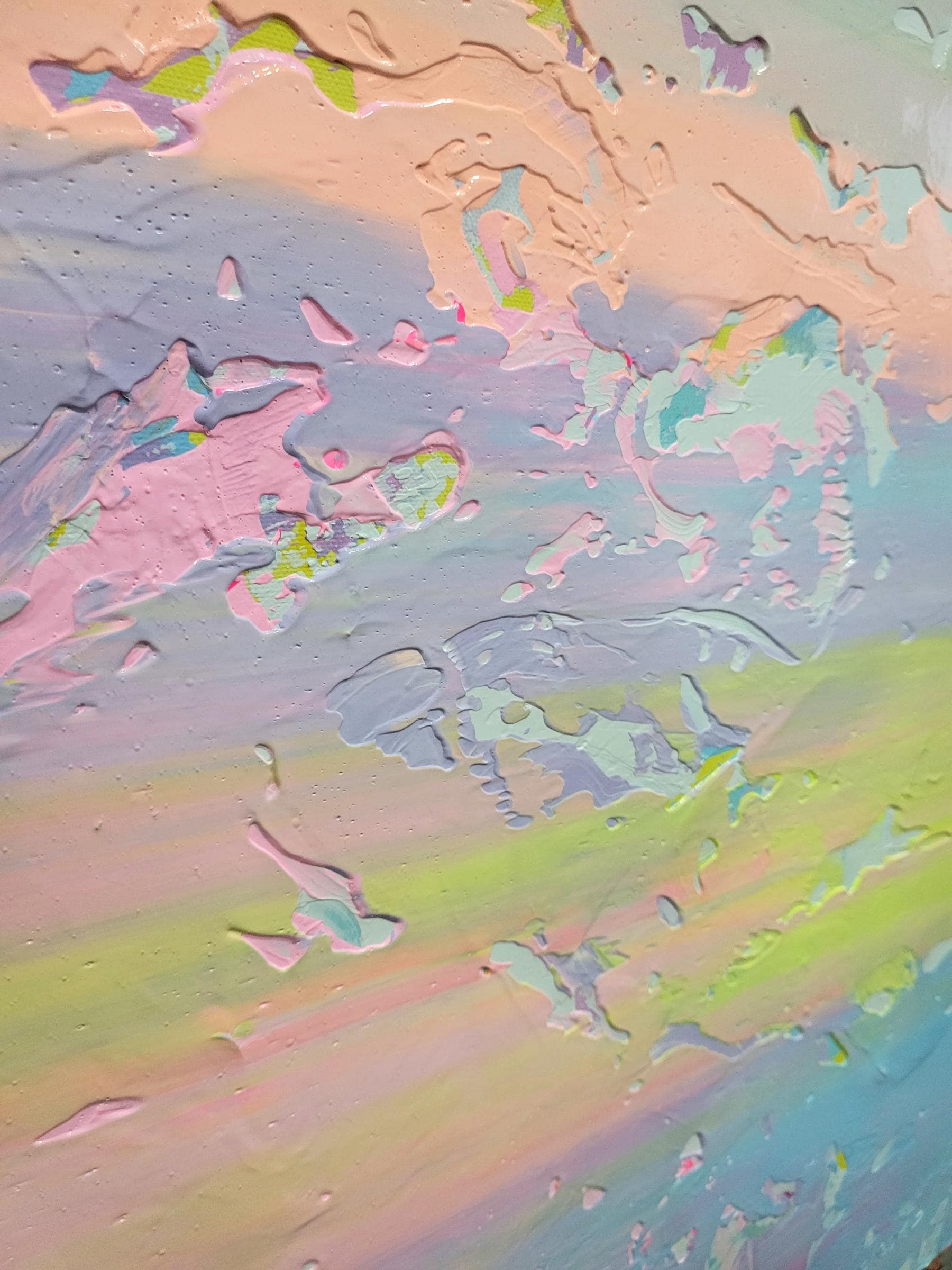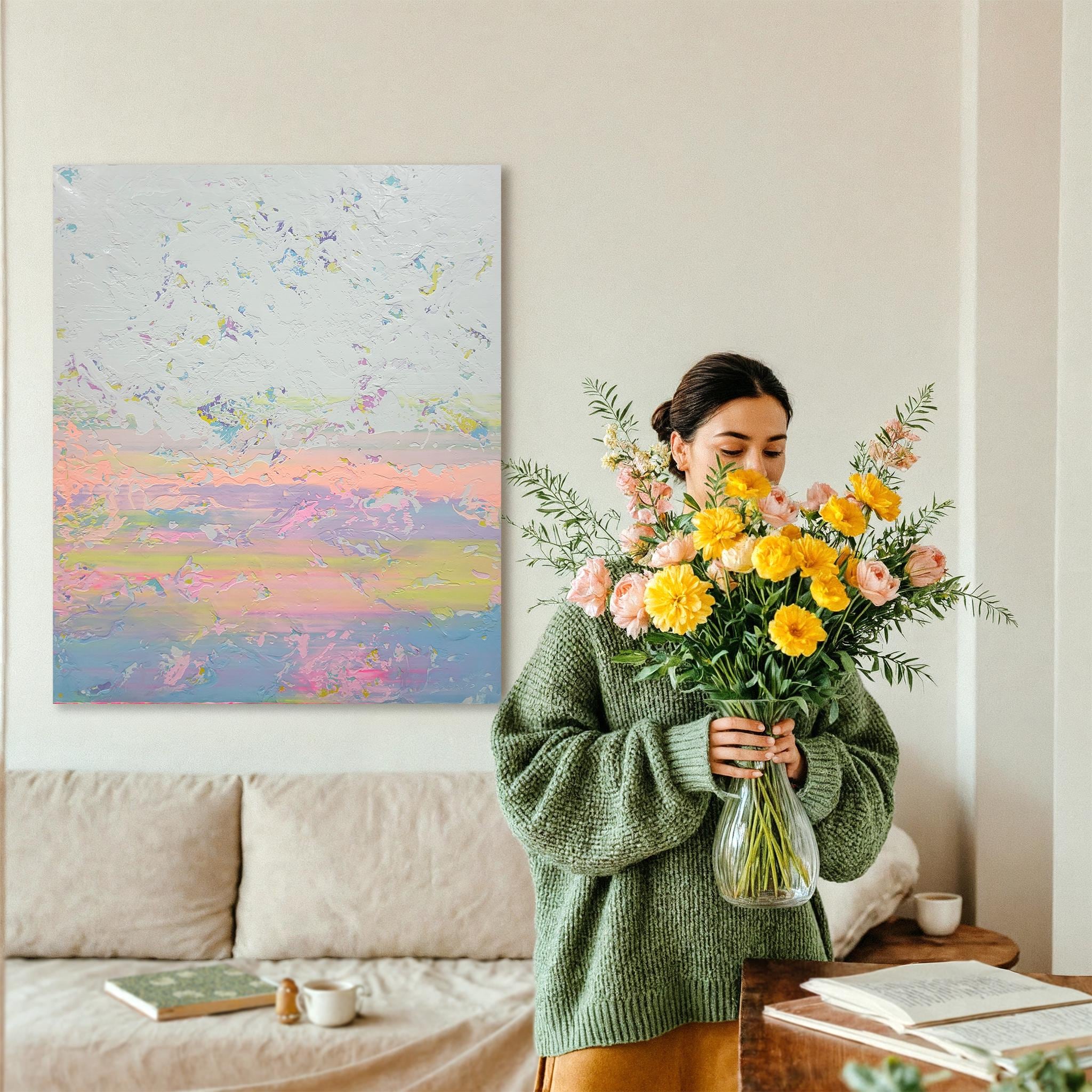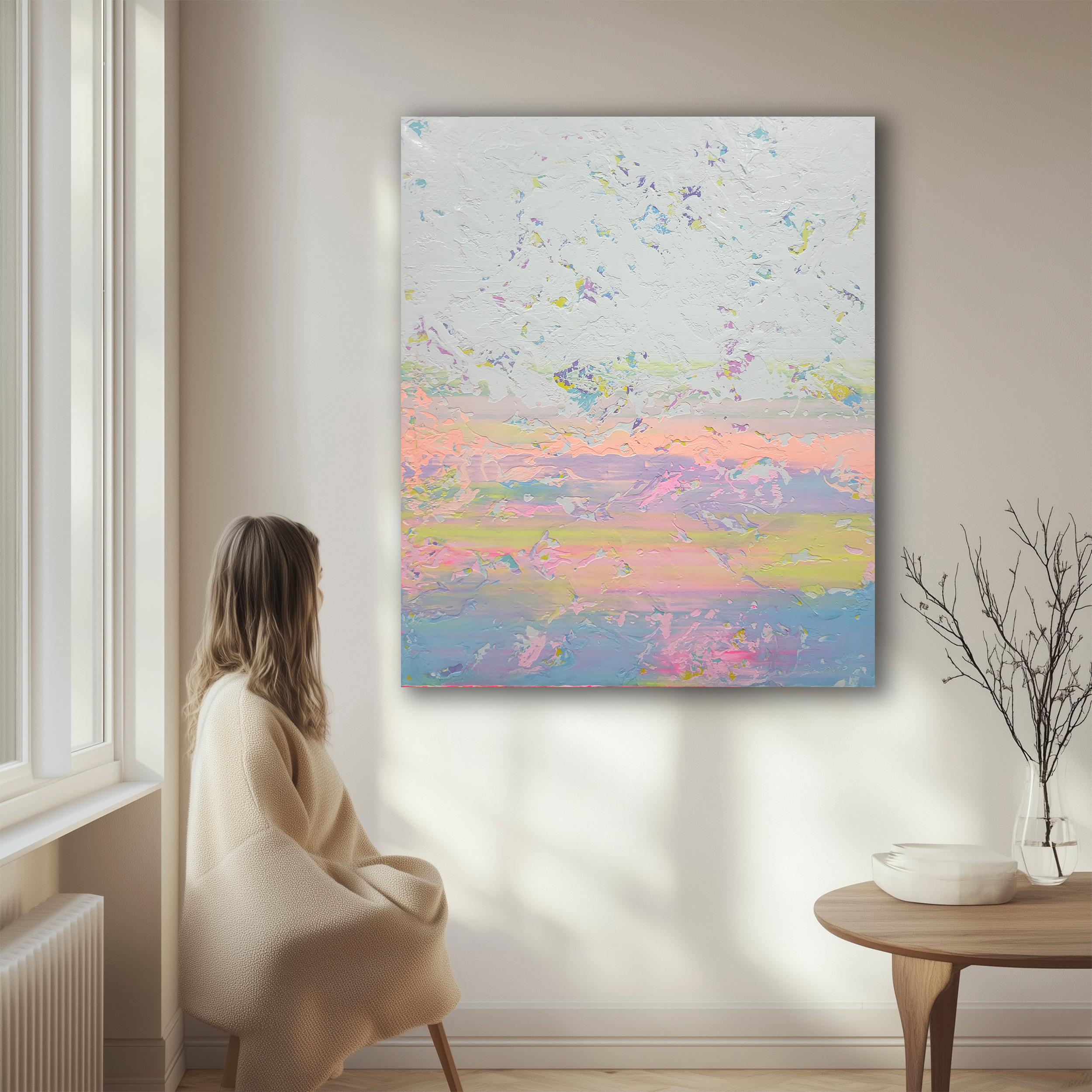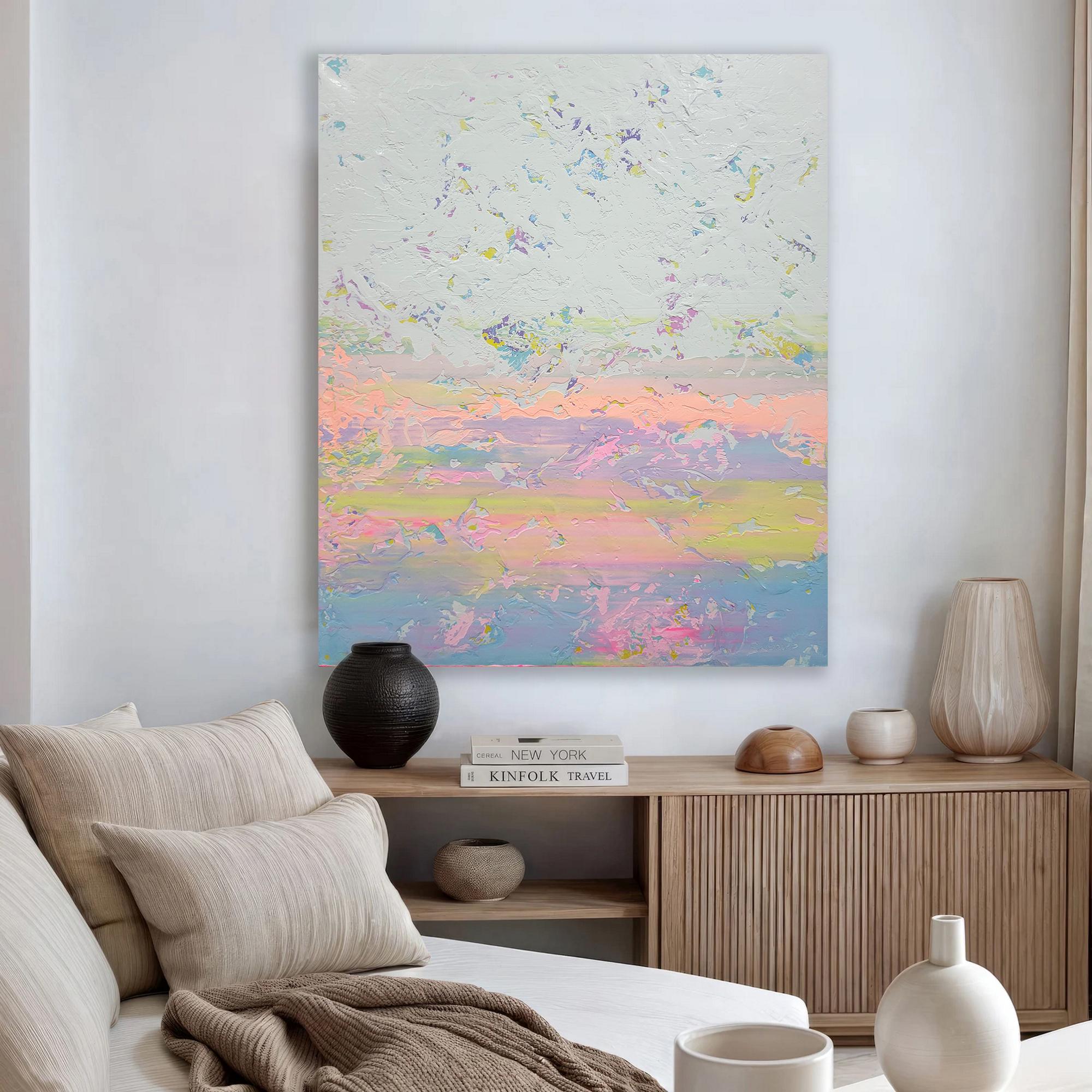 In this piece, I poured my emotions into gentle, pastel layers, capturing a calm yet vibrant essence that moves between abstraction and suggestion. The textured acrylic strokes evoke a dreamy horizon, inviting peace and introspection. This painting will infuse your space with a soft, uplifting energy, sparking quiet reflection and a sense of delicate beauty.