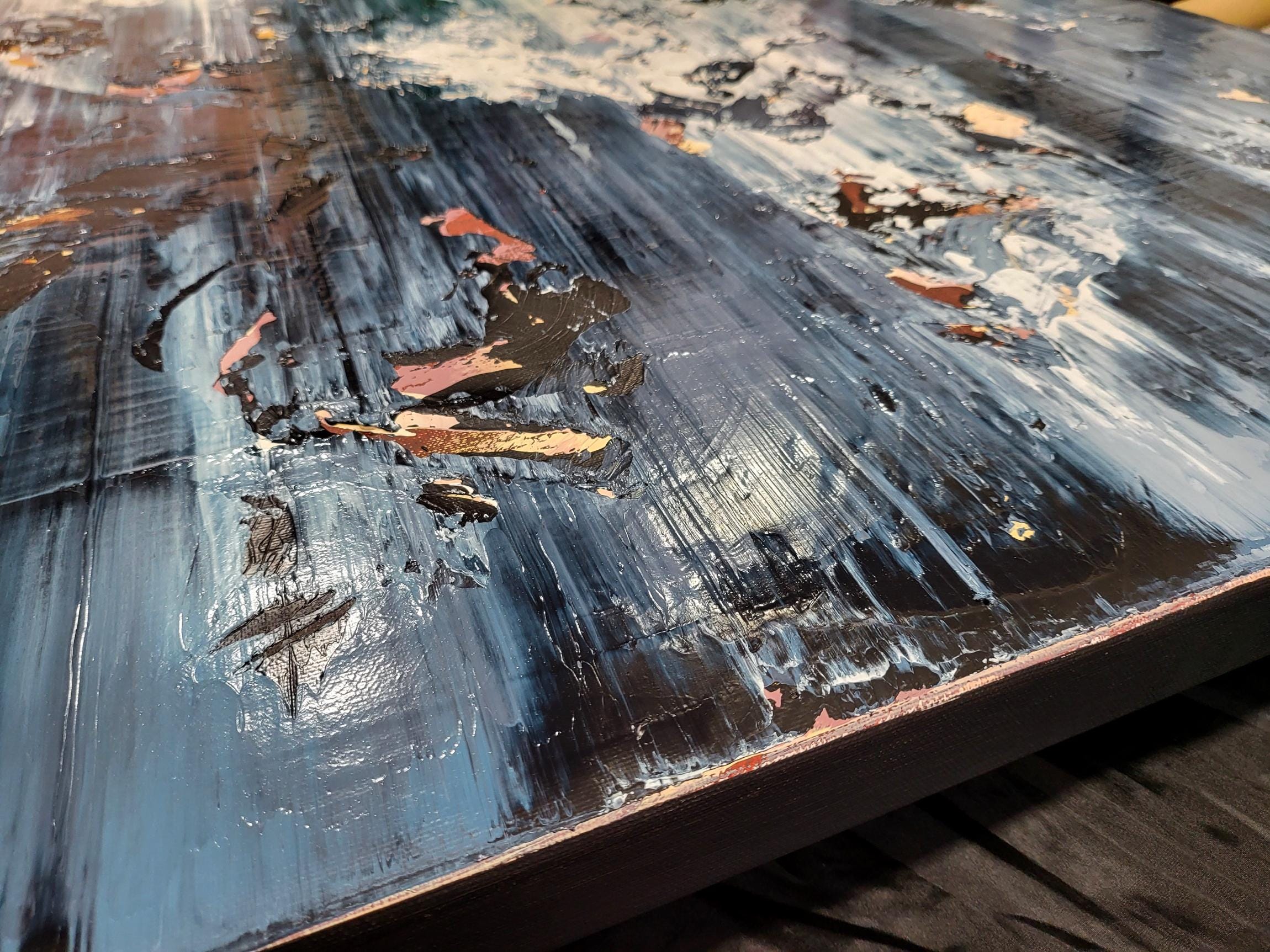 In this piece, I poured raw emotion onto the canvas with bold acrylic strokes, capturing the tension between light and shadow. The abstract expressionism reveals the chaos and beauty of inner struggles, while the subtle hints of color ignite sparks of hope. It’s an intense energy that brings depth and movement, transforming any space into a dynamic sanctuary of reflection and inspiration.