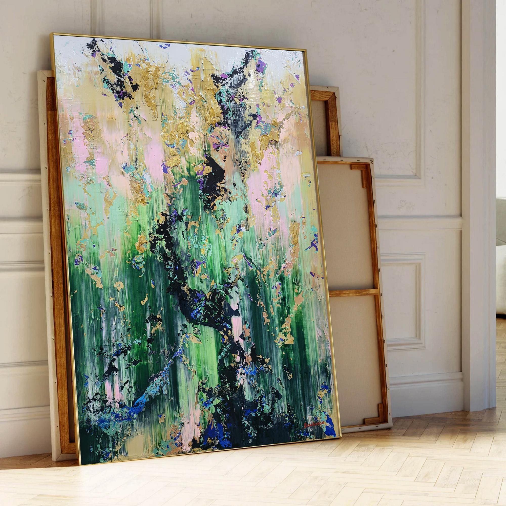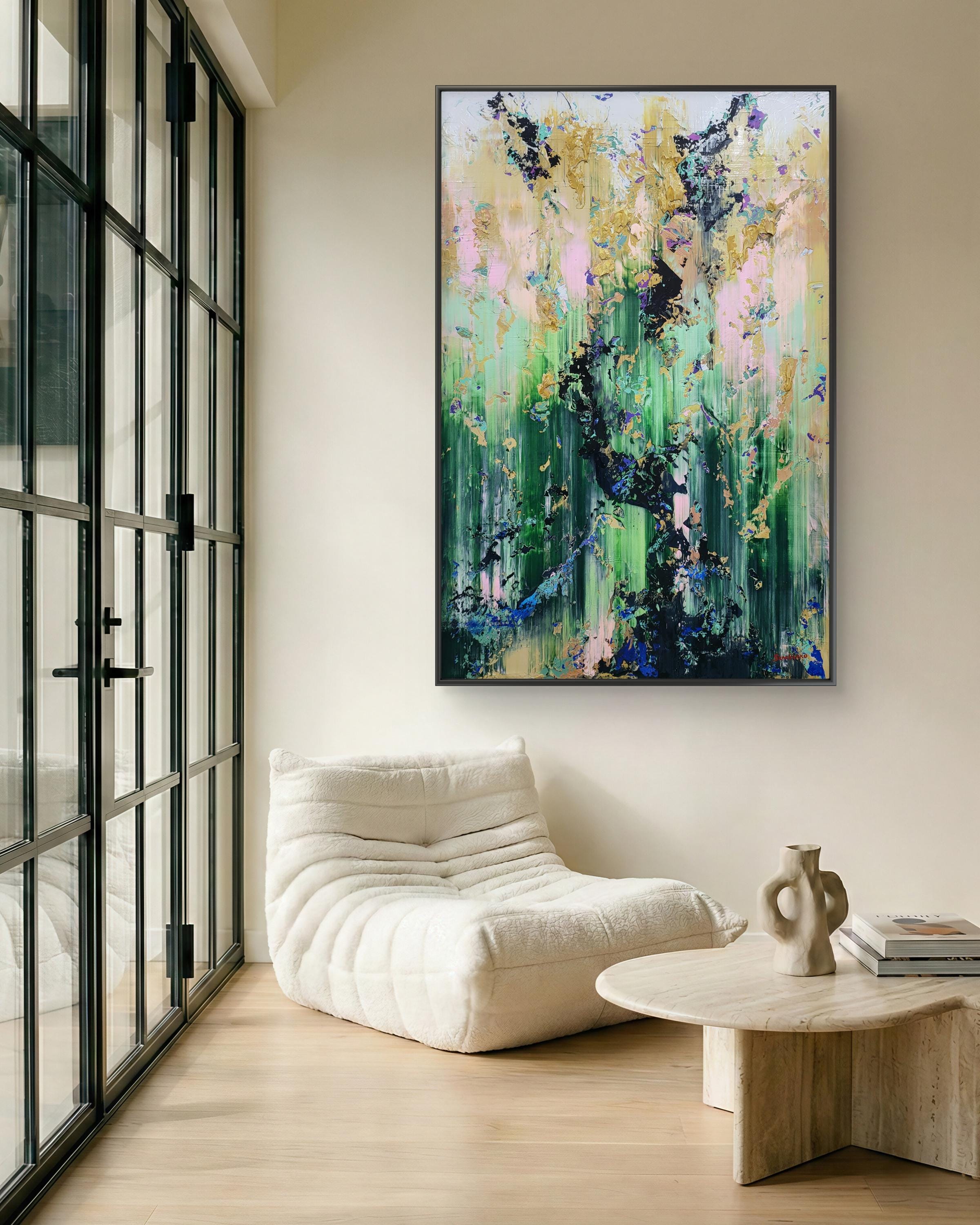 Elevate your space with "Forest Veil," a stunning, original abstract acrylic painting by renowned artist Alex Senchenko.