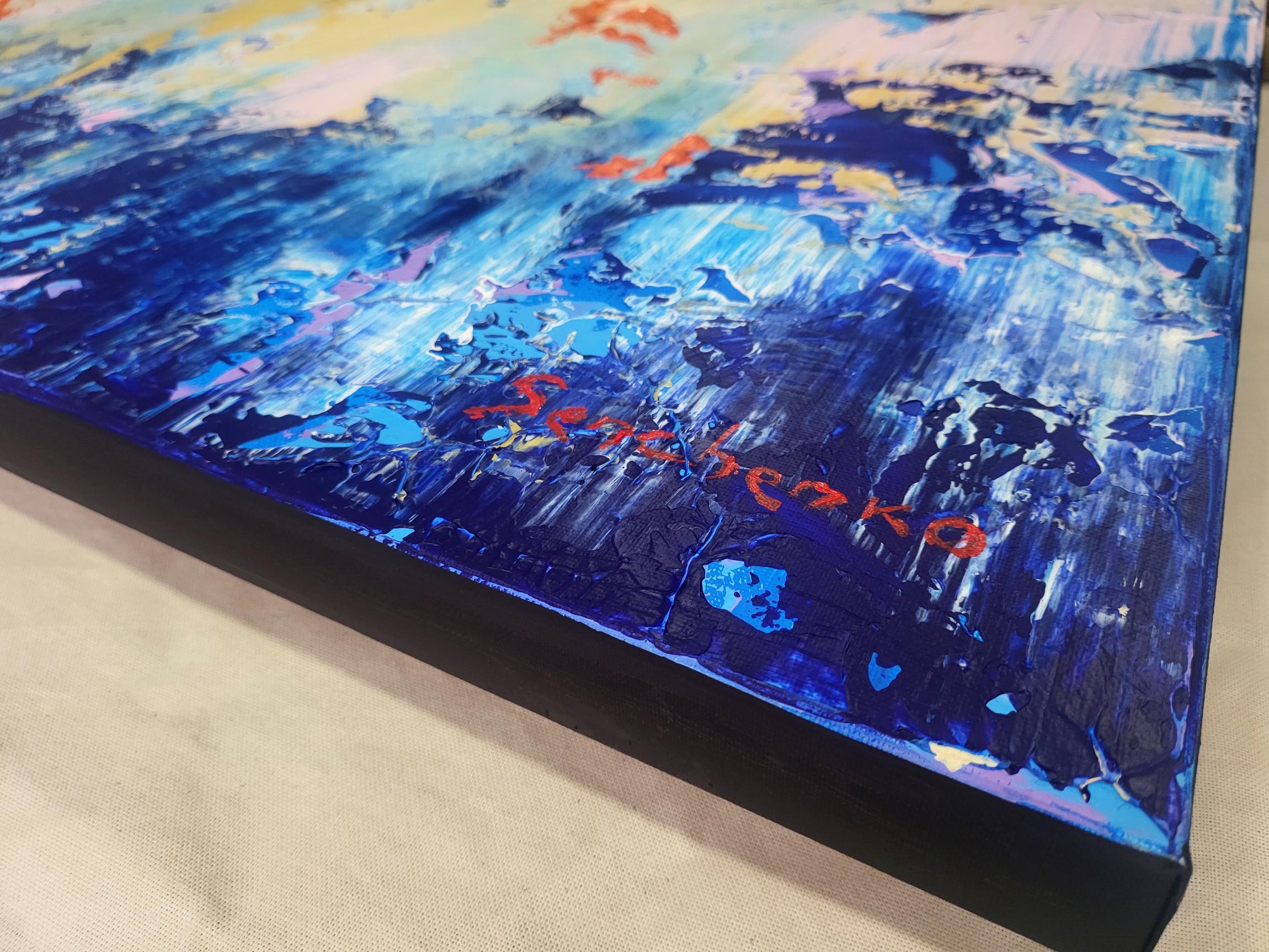 Hand-painted with high-quality pigments and heavy-body acrylics, the thick, palette-knife texture gives this piece a wonderful 3D quality that changes with the light throughout the day.